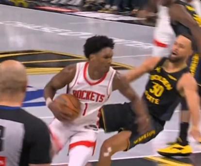 本场比赛,两支颇有渊源的球队相遇再度打出了很浓的火药味。在上赛季季后赛首轮中,勇士队完成下克上4-3力克火箭晋级。本场比赛,勇士当家球星库里遭遇火箭攻防两端针对,其中在一次防守回合中,库里本想造阿门-汤普森进攻犯规,但最终被判防守犯规。更不利的是,库里疑似在这个回合中伤到了右大腿股四头肌,这让库里在终场前32秒左右时不得不提前退场。