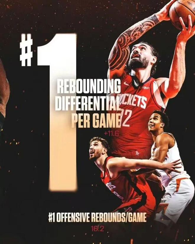 迄今为止,火箭场均净胜对手近12个篮板