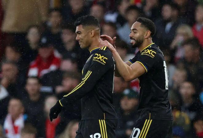 布鲁诺·费尔南德斯主罚,卡塞米罗把握住这次本应不存在的定位球,跃起头球冲顶入网,曼联1-0诺丁汉森林。