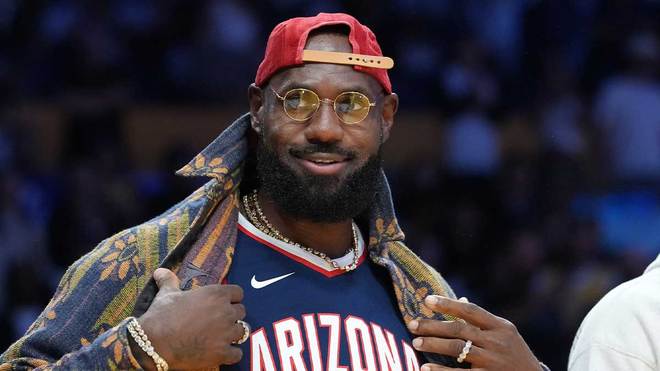 美记晒照:勒布朗身穿小儿子布莱斯大学球衣在场边观战